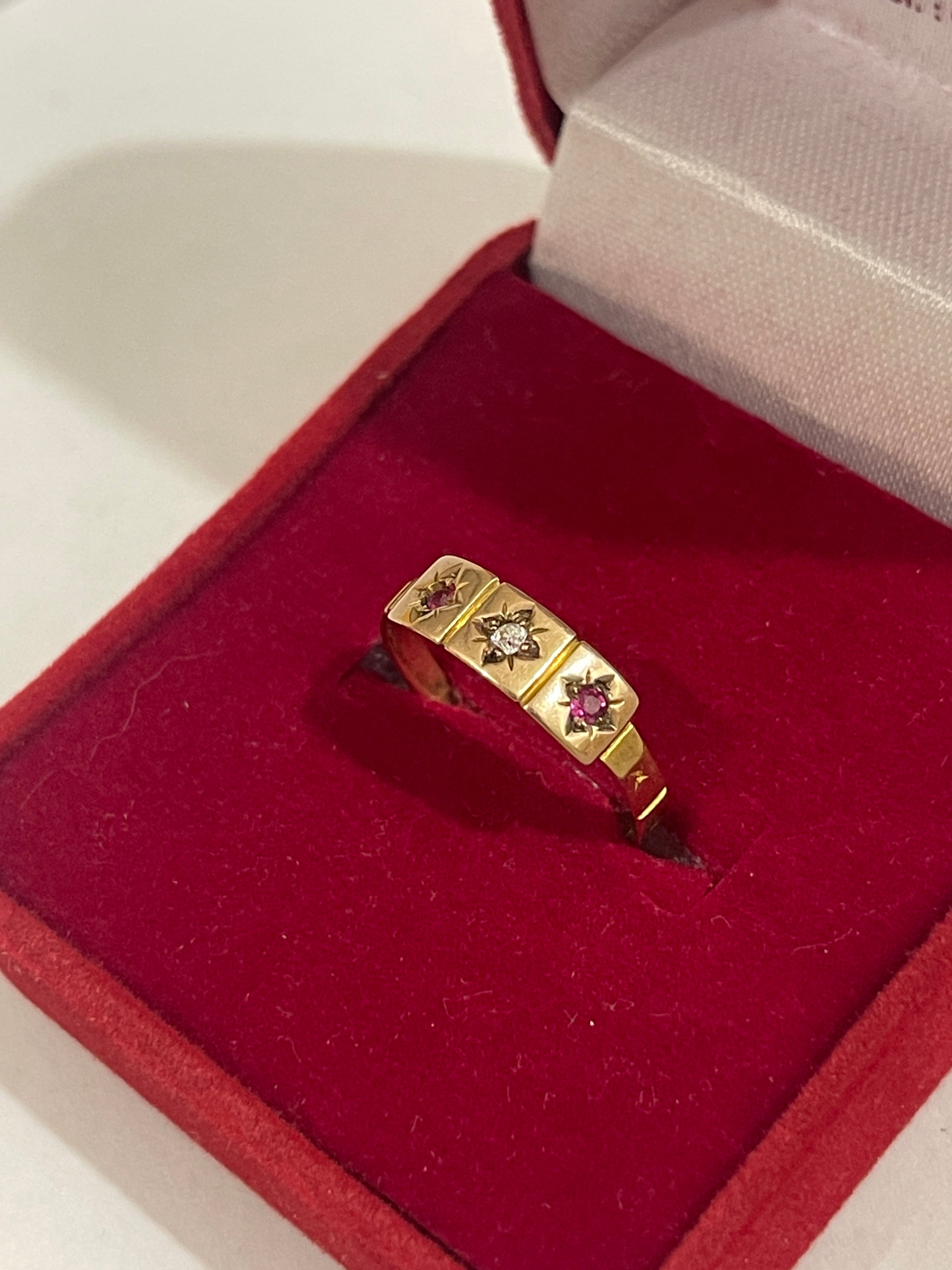 Pictured Victorian 18CT Gold Ruby and Diamond Ring, Hallmarked London 1873