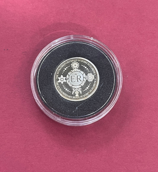 Elizabeth II, 1977 One Crown, Queens Platinum Jubilee Commemorative, Uncirculated, Gold Platinum Plated coin and stamp set, With COA 2022 (B)