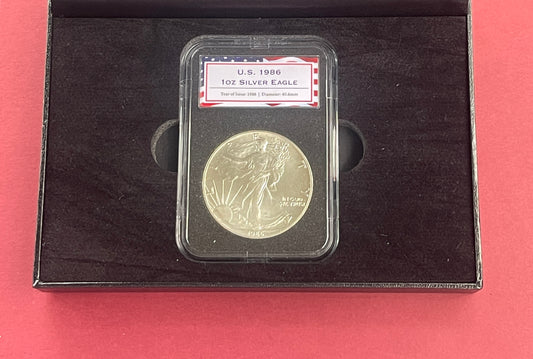 United States of America, Silver One Dollar 1oz, Silver $1 One Ounce, USA Silver Eagle Boxed Set, With COA 1986 (B)