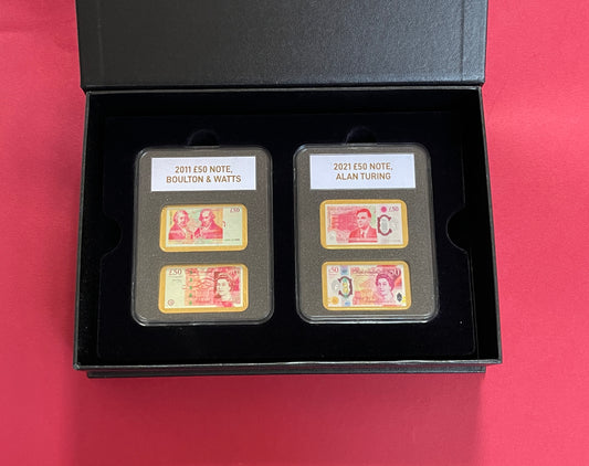 Elizabeth II, £50 Banknote Ingot Pair Proof, 2011 and 2021, Gold Plated, 4 Ingot Set, 2021 (B)