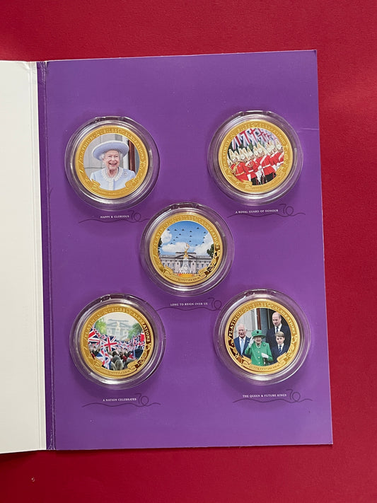 Elizabeth II, Queens Platinum Jubilee 2022, 24ct Gold Plated, 5 Coin Set, 2022 (B)