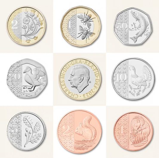 King Charles III, £2, £1, 50p, 20p, 10p, 5p, 2p, 1p, Definitive coin set, 2023 (B)